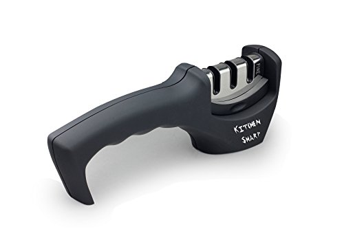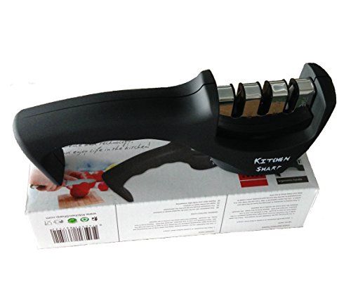KitchenSharp Professional Quality, Manual, Knife Blade Sharpener | 3 Stage Process to Hone Ceramic, Steel and Metal Knives, Black