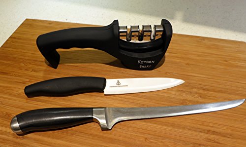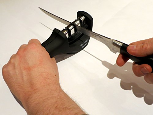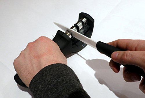 Works with All Types of Knives: Features 3 sharpeners in one: Ceramic, Coarse & Fine. Effectively sharpens all sizes of metal, steel & ceramic knives without damaging the blade.