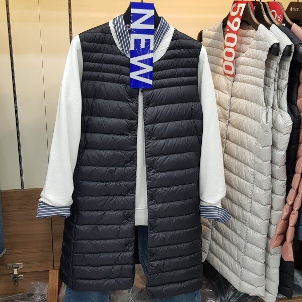 라운드넥 롱 구스 80/20(거위)경량 여 베스트.나일론 경량소재를 사용하여 가볍고 활동성이 좋으며 심플한 코디가 용이한 라운드넥베스트로 기장감이 있어서 한겨울에 코트나 아우터 안쪽에 코디할수있고 , 인기인 상품으로 조기품절 예상입니다 ㆍ