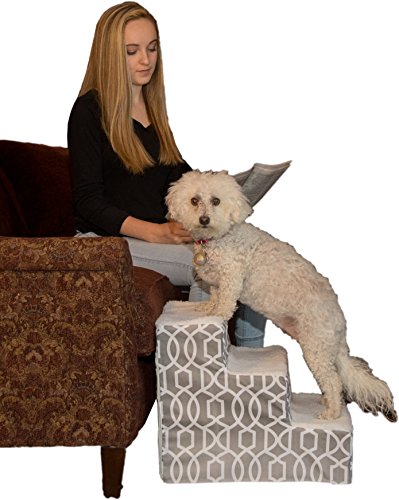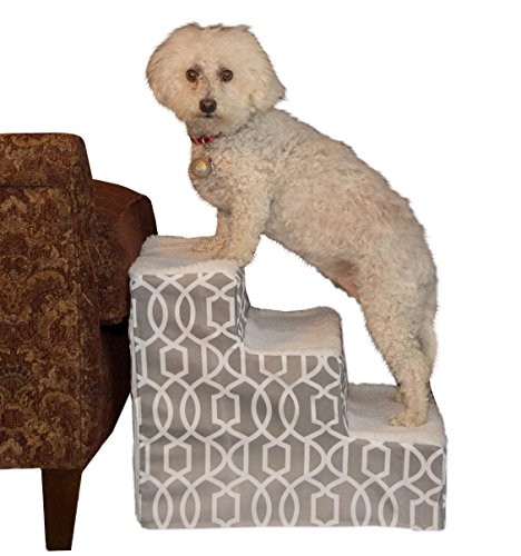Studio : Vermont Juvenile MFG DBA (Pet Gear) -- Dropship Publisher : Vermont Juvenile MFG DBA (Pet Gear) -- Dropship Binding : Misc. Product Description The designer 3- step allows your dog the ability to get up to the bed with ease. The designer 3- step has rubber grippers on the bottom this keeps the step secure and in place while the pet is using the step. Assembly is easy just snap together no tools required and you pet will be using These stairs in minutes. 0