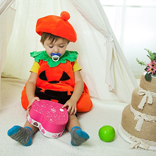 It has a little padding in the body part which helps it puff out like a pumpkin shape. This adorable costume would definitely win some cutest baby awards this Halloween, will add the festive atmosphere to your Halloween party and leave you and your baby lots of wonderful memories. Imagine that put your little one in this Toddler Pumpkin Costume, and start taking photos,catch their silly faces, and crazy antics on camera. And to do that you need your little one in the cutest Halloween costumes, and hey, what's cuter than a little pumpkin? Nothing. You will be glad that you can show it off later on or maybe use it as babies' graduation photo. Believe that these lovely photoes can be treasure of you and your baby.Feature