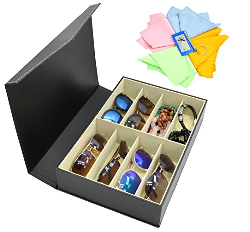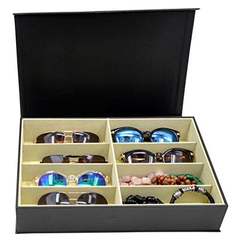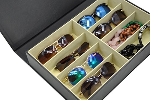 3 Gifts for Free ADTL Jewelry 8 Grids Black PU Leather Organizer Sunglass Display Case Eyewear Storage Box