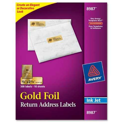 Avery Foil Mailing Labels, 3/4 x 2-1/4, Gold, 300/Pack, PK - AVE8987