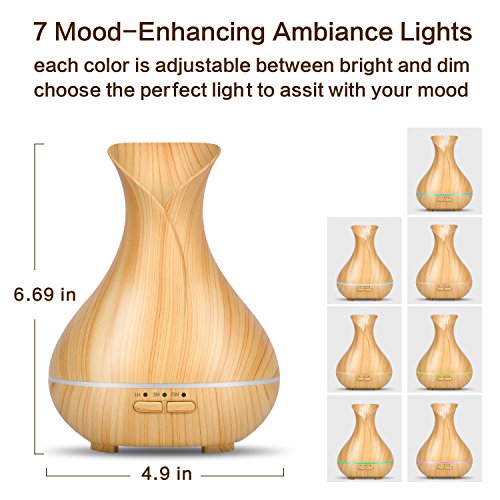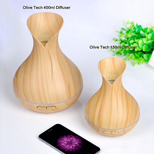 OliveTech Aroma Essential oil diffuser, 150ml Wood Grain Aromatherapy Diffuser Ultrasonic Cool Mist Humidifier with 7 Color Changing LED Lights and...