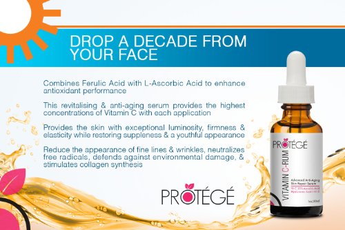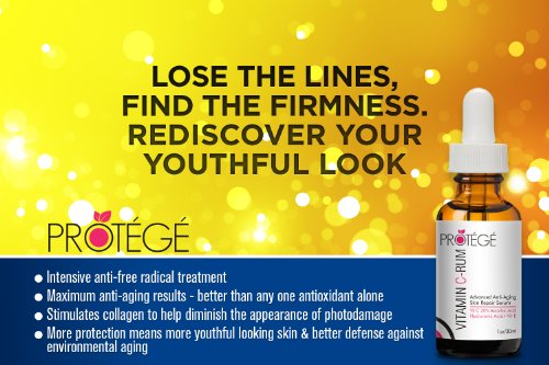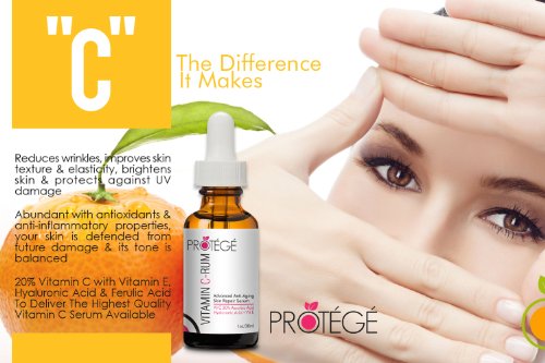 HIGHEST POTENCY AND QUALITY ANYWHERE Protege's vitamin C serum uses 20% L-ascorbic acid, the best, most effective, natural and easiest-to-absorb form of vitamin C for your skin. Unlike nearly ALL competitors, this serum is 20% Vitamin C, instead of containing 20% Vitamin C concentrate as 1 ingredient. Get the real deal!