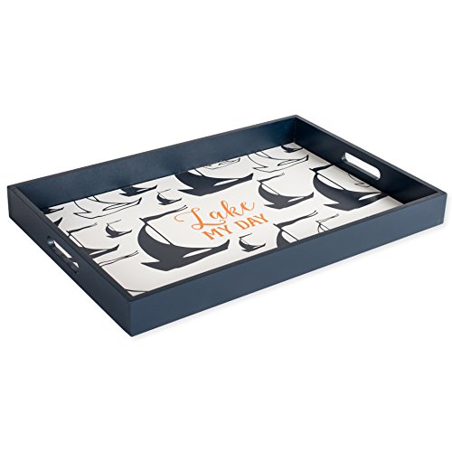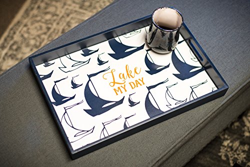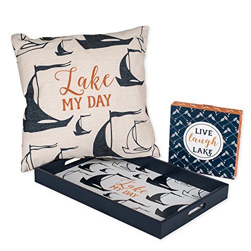 Lake My Day Sailboat Silhouette Tray, Throw Pillow and Wall Art Plaque Set of 3 for the Home