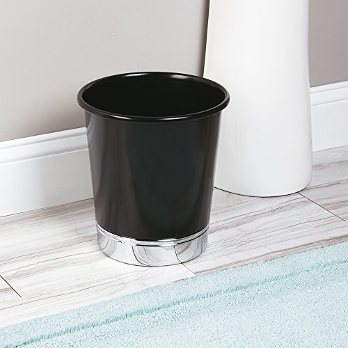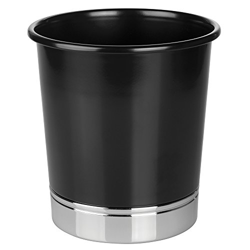 mDesign Round Metal Small Trash Can Wastebasket, Garbage Container Bin for Bathrooms, Kitchens, Home Offices - Solid Steel Construction with a Glossy Black Finish and Polished Chrome Base