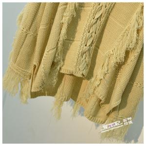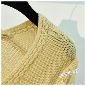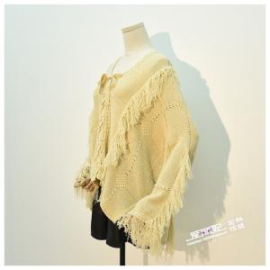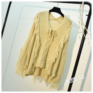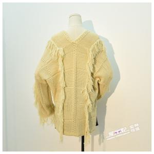 ニットトップス チュニック丈 ニットプルオーバー 編み上げリボン フリンジ ゆったり セーター トップス エスニック