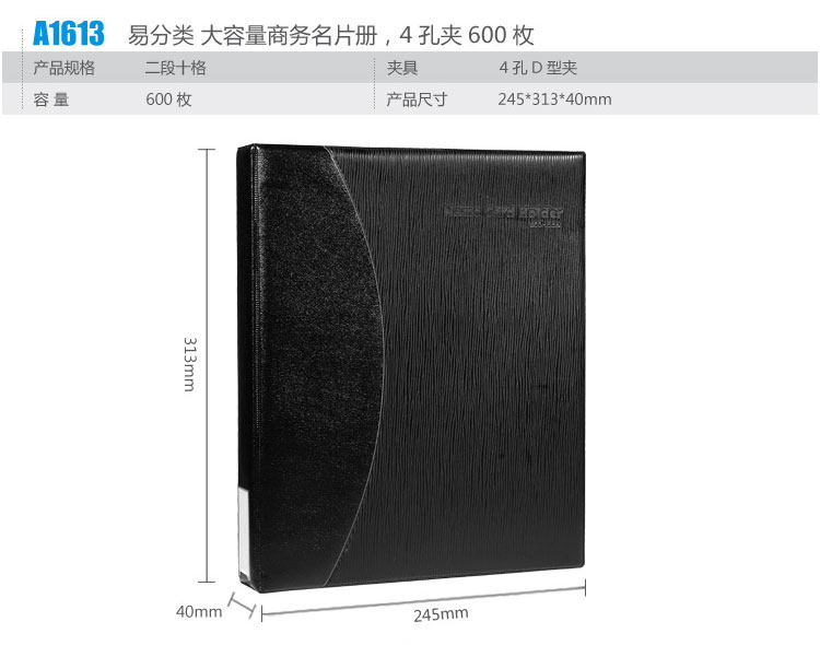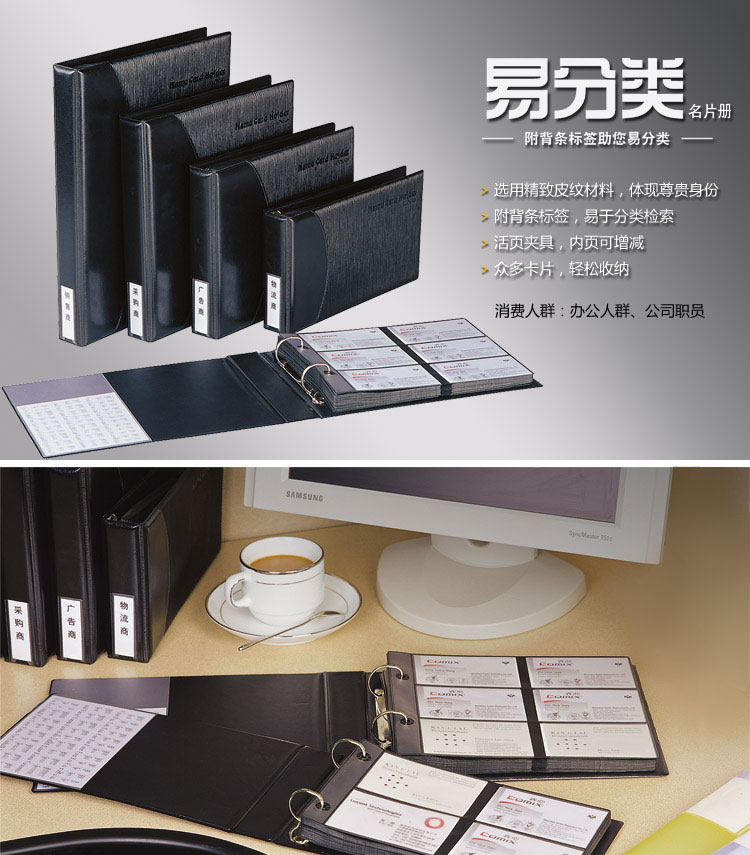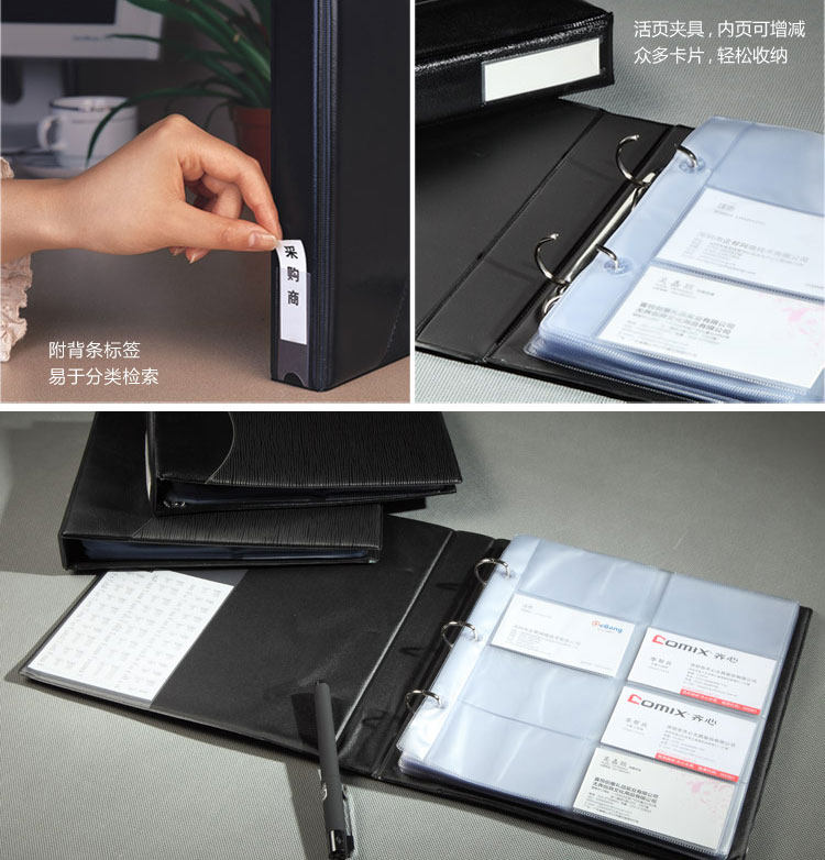 齐心(COMIX)A1613 高级商务名片册,4孔夹600张 黑色