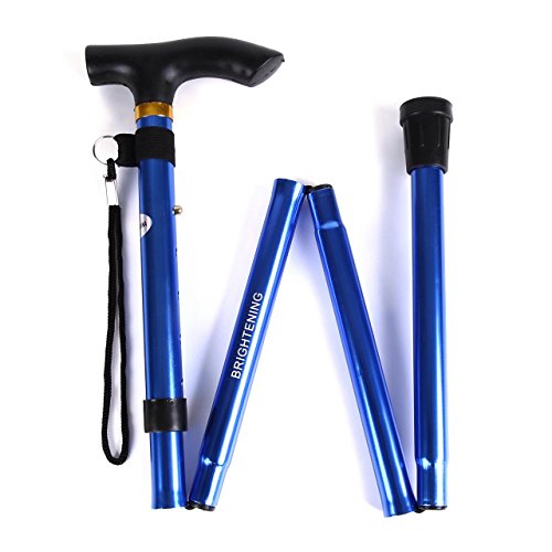 BRIGHTENING 접이식식 트래킹 폴 지팡이 알루미늄 경량 콤팩트 스틱 길이 5단계 조절 안전 등산 경쾌 하이킹 (청)