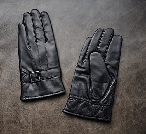 Note:Measure the hand you normally write with at its widest point,excluding the thumb. Our leather gloves are slim fit design. Gloves would be snug at first but leather will stretch. Made of real leather with warm and soft plush lining,offer a unique mix of practical design and directional style, keep your hand warm,and protect your hand when going outside in cold weather conditon.try this fashion warm gloves by HINY,enjoy your winter season. 0