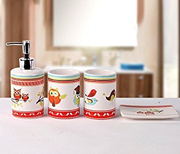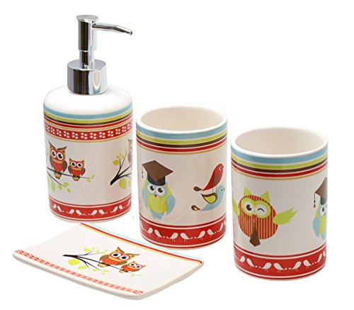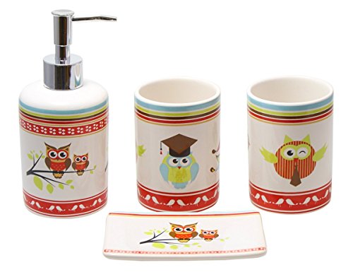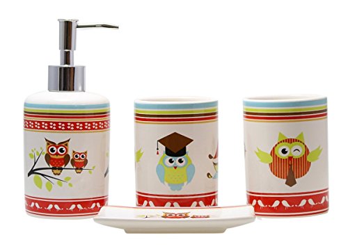 Modern 4-Piece Ceramic Bathroom Accessory Set - Owl Pattern