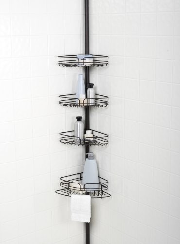 Transform wasted corner space into a valuable storage area with Zenna Home’s tension corner pole caddy. This bathtub and shower pole caddy’s rust-resistant tension pole can be adjusted to fit in any shower up to standard ceiling height, 8'1" (extensions available). Its non-marring end caps prevent scratching of your shower or ceiling. Three large wire shelves and a deep storage bucket provide ample space to hold all of your bathroom products. The curved front rail shelf design is both decorative and functional with its built-in razor storage. Below each shelf is a support bar to allow storage of heavier bathroom items like shampoo bottles. The towel bar and hooks on the deep basket provide additional hanging storage for towels, razors, poufs and loofahs. Open wire design ensures easy drainage.Step by step instructions allow for easy, no tools assembly. Our US-based Customer Service department is available toll-free (800-892-3986) to answer any additional questions.