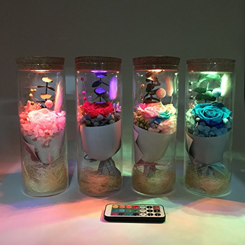 sexyrobot Glowing Preserved Pink Rose in a Glass, RGB Preserved Fresh Flower Glowing Colorful with Remote Control as Wedding Christmas Mother's Day Creative Gifts