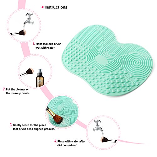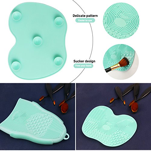 ESARORA Makeup Brush Cleaning Mat, Makeup Brush Cleaner Set Series New Arrival More Easy to Clean Makeup Brush Portable Brush Washing Tools (Green)