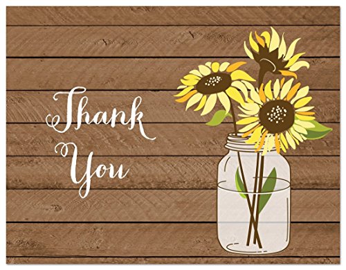 50 Sunflower Rustic Wood Wedding Thank You Cards
