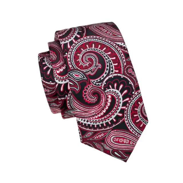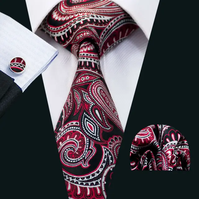 | [해외]LS-1398 배리. 좋아서 클래식 남성 넥타이 레드 페이즐리 100% 실크 넥타이 손수건 커프스 남성 정장 웨딩 파티 신랑 비즈니스 |
