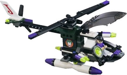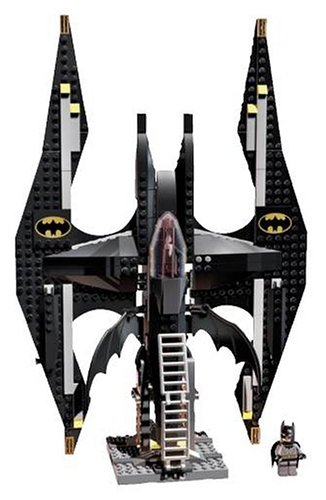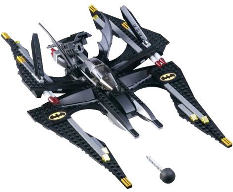 -. Feature : L.E.G.O engineers must build the 15-inch Batwing and 9-inch Joker Copter using the 523-piece kit, which includes parts for the flying machines, Batman, Joker, henchmen, and miscellaneous gadgets and weapons / 523-piece L.E.G.O kit featuring Batman, the Joker, and their flying machines with moving parts. / Batwing's wings lift to reveal missiles that can actually launch. / A ladder off the Joker Copter can be shot down