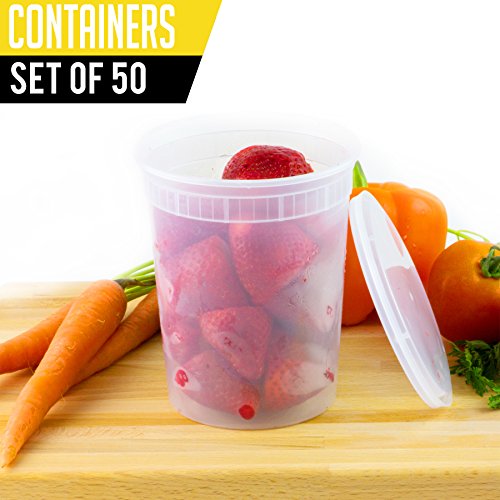 32 oz Deli and Slime Cups By Chefible: 50 Pack Of Reusable Food Containers With Airtight Leak Proof Lids – Clear BPA Free, Microwave And Dishwasher Safe Storage Cups For The Freezer