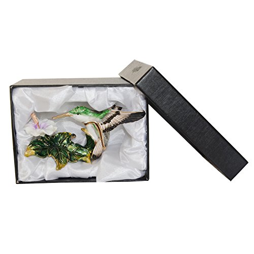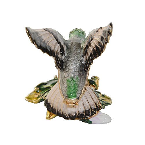 Bird Trinket Box Metal Enameled Animal Figurine Collectable Wedding Jewelry Ring Holder Organizer (Hummingbirds)