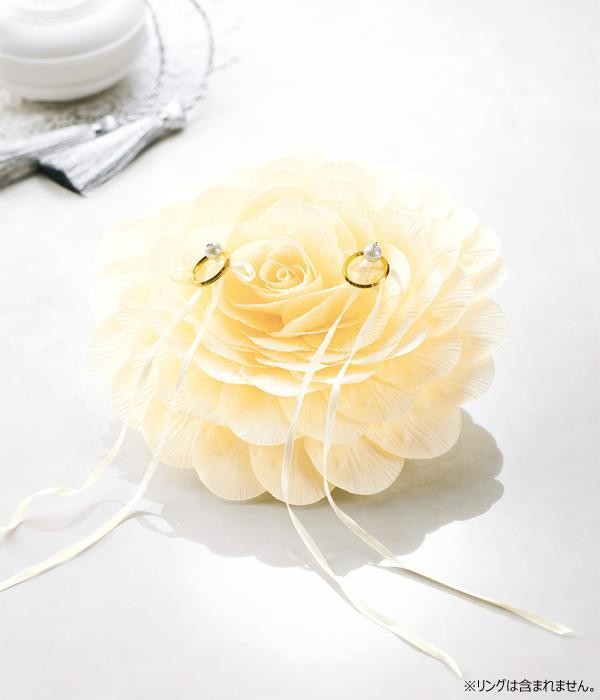 | イタリア語でお花を意味する「FIORE」。花びらを使ったエレガントなリングピローです。縫製済み・綿入れ済みのピロー入りで花びらを貼り付けたり、ワイヤーにパールビーズを通すだけで簡単に作ることができます。結婚式のワンシーンを彩ること間違いなし☆ |