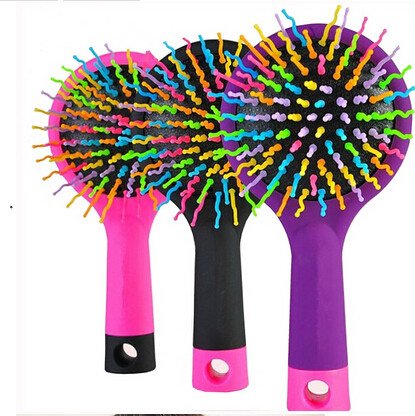 (shinon)/Styling Tools/Styling Accessories/DIRECT FROM USA/Rainbow Comb Volume Brush Magic Hair brush Wet Dry Brush With Mirror for Women Girl