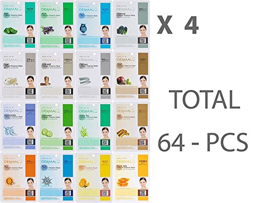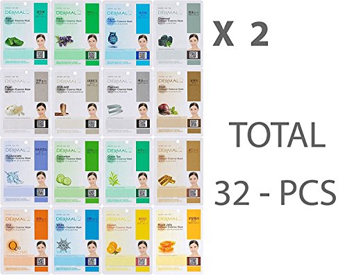 Dermal Korea collagen essence full face 16 facial mask sheets A+B Full Combo pack (32 Different Colors)