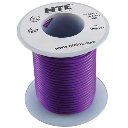 NTE Electronics WH18-07-25 Hook Up Wire, Stranded, Type 18 Gauge, 25' Length, Violet