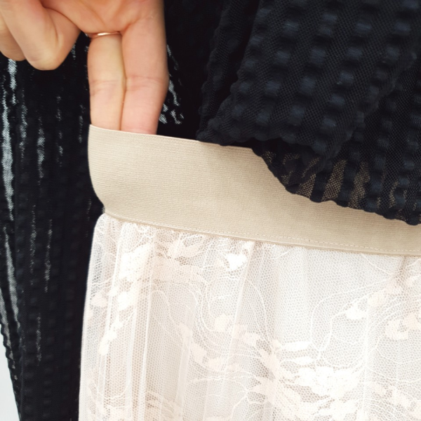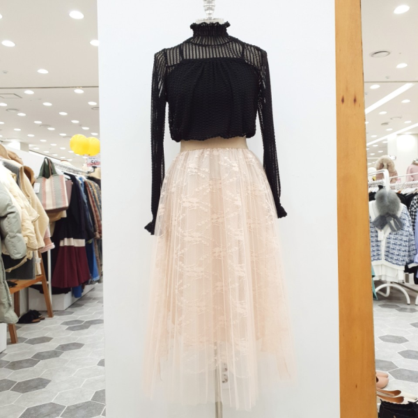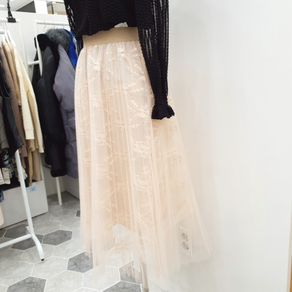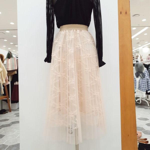레이스 쉬폰 스커트를 소개해드릴게요:) 허리부분에는 밴딩으로 허리라인을 잡아주어 체헝보정 효과와 함께 더욱 편안한 착용감을 주며 다양한 상의와 스타일링하기 편하고 롱-한 기장감으로 하체 체형 커버 효과를 주어 굳:)하나쯤 소장하고 있으면 유행 없이 꺼내 입게 될 아이템이예요~