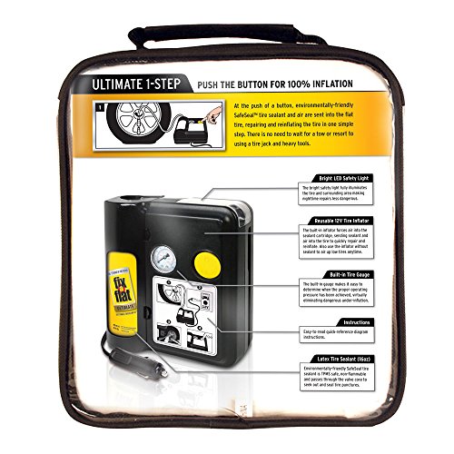 -. Binding : Automotive -. Brand : Fix A Flat -. EAN : 0716281504976 -. Feature : Provides 100 percent inflation in one simple step / Sealant and air are sent into the flat tire at the push of a button / Repairs and reinflates large tires in 7 minutes / Includes powerful reusable 12 Volt inflator with built-in gauge / Works on all vehicles -. Label : Fix-A-Flat -. Manufacturer : Fix-A-Flat -. Model : S50073 -. MPN : S50073 -. NumberOfItems : 1 -. PackageQuantity : 1 -. PartNumber : S50073 -. ProductGroup : Automotive Parts and Accessories -. ProductTypeName : AUTO_ACCESSORY -. Publisher : Fix-A-Flat -. ReleaseDate : 2014-11-18 -. Studio : Fix-A-Flat -. Title : Fix-A-Flat S50073 Ultimate 1-Step Tire Repair Kit -. UPC : 716281504976