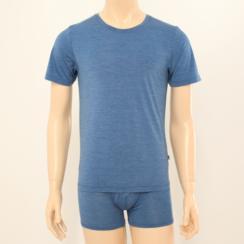 멜란지 느낌의 투톤 효과를 통해 원단의 시각적 효과를 극대화 시킨 소재로 착용시 부드럽고 시원하며,땀 흡수력, 습기를 빠르게 증발시켜 쾌적한 신체상태 유지.