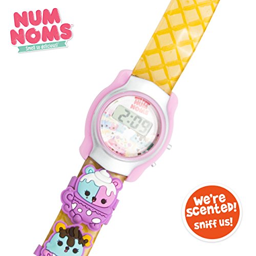 -. Binding : Watch -. Brand : Num Noms -. Department : girls -. Feature : ATTRACTIVE P.R.INTED DESIGN: The P.R.Inted art on the strap of this watch grabs the attention of your kid, making it even more attractive for your child. / SOFT SCENTED STRAP: The scented strap ensures that this timepiece always smells nice, making it your kid's favorite while also being soft against the delicate skin of the little one. / LCD DISPLAY: The LCD display makes reading time and numbers easy for your little one. / BONUS ADHESIVE PATCH: Comes with an unique adhesive patch that you can use anywhere / RECOMMENDED FOR: This LCD art watch is recommended for children above three years. -. ProductGroup : Watch -. ProductTypeName : WATCH -. Title : Num Noms Little Girl's Scented Strap Character Design LCD Digital Wrist Watch