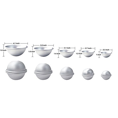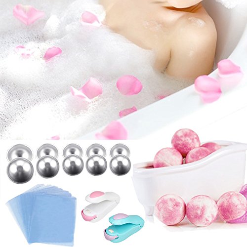 Sparklelife Big Sizes (4.1/ 3.5/ 3.1/ 2.7/ 2.3 inches) 5 Sizes 10 Pieces DIY Metal Bath Bomb Mold DIY Metal Bath Bomb Mold with 100 PACKS Wrap Bags Mini Heat Sealer for Homemade DIY Crafting
