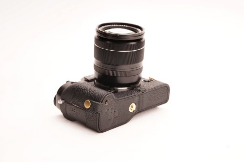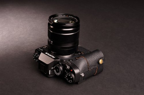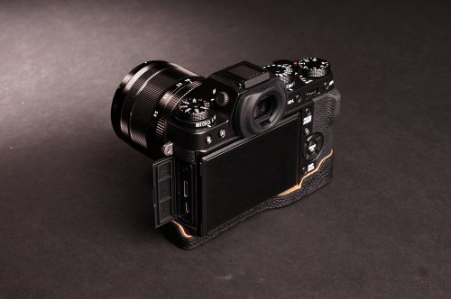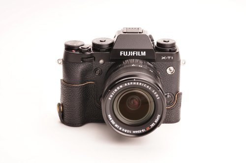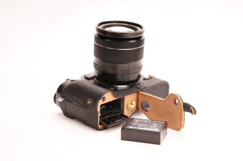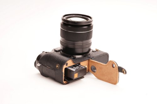 Handmade Genuine real Leather Half Camera Case bag cover for FUJIFILM X-T1 XT1 Black embossed leather Bottom opening Version
