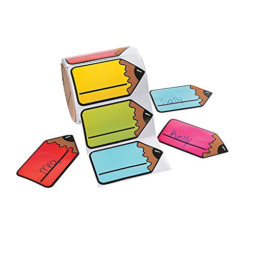- Includes green, blue, pink, red and yellow name tags on a roll.