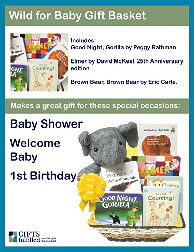 -. Binding : Baby Product -. EAN : 0719926041546 -. Feature : Collection of classic board books with animal themes in this baby gift basket / Includes favorite childrens authors Peggy Rathmann and Eric Carle / Start babies first library with the Wild For Baby Gift Basket / Makes a wonderful baby shower gift or first birthday baby gift / Provides work opportunities for adults with disabilities who assemble our gifts -. Label : Book Bouquet -. Manufacturer : Book Bouquet -. MPN : BBBGWLD13 -. PartNumber : BBBGWLD13 -. ProductGroup : Baby Product -. ProductTypeName : BABY_PRODUCT -. Publisher : Book Bouquet -. Studio : Book Bouquet -. Title : Gifts Fulfilled Wild for Baby Gift Basket of Animal Themed Board Books and Plush -. UPC : 719926041546