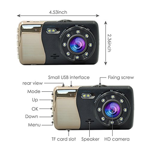 Dash Cam Vehicle DVR, HD 1080P Car Dual ,Rear Camera, 140 Degree Wide Angle, Night Vision,Loop Recording, Motion Detection ,G-sensor (Style 2) with LDWS & FCWS, Accfly