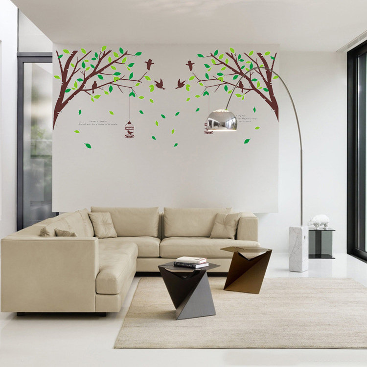 大型客厅沙发温馨电视背景墙贴纸林间鸟语浪漫婚房卧室墙壁装饰贴