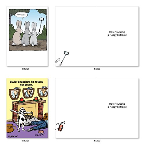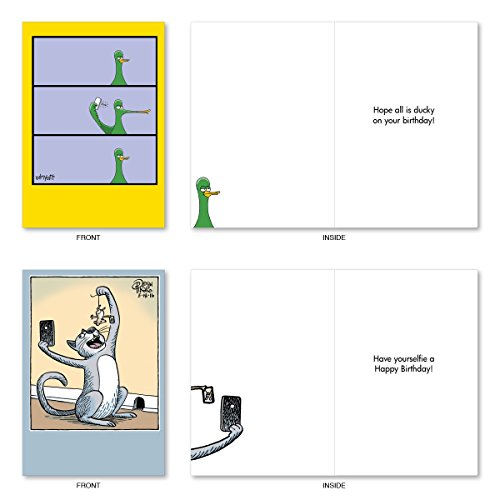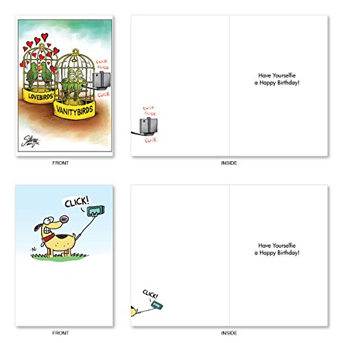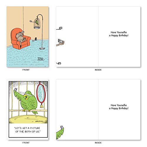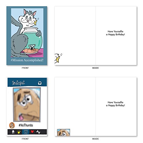 A2747BDG PET SELFIES: Assorted Box Of 10 Hilarious Birthday Cards, W/12 Envelopes (10 Designs, 1 Card Per Design)