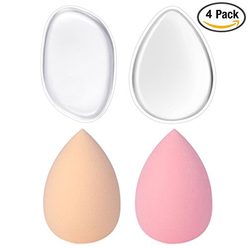 KEKU 2 Pack Silicone Makeup Sponge with 2 Pack Beauty Makeup Blender Set for Concealer Gel Foundation Liquid Creams Contouring Cosmetic Application