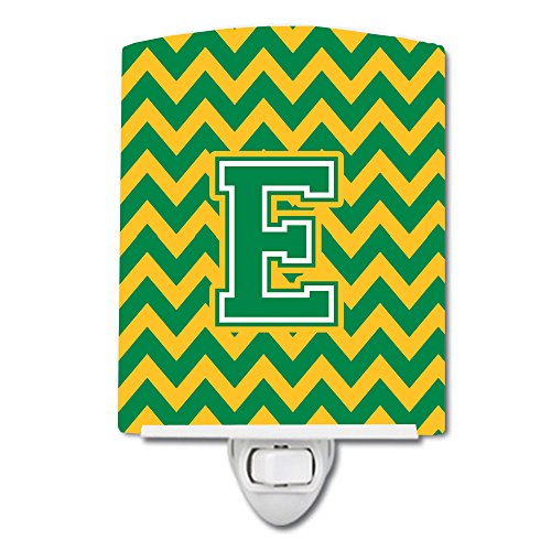 Caroline's Treasures Letter E Chevron Green and Gold Ceramic Night Light, 6 x 4", Multicolor