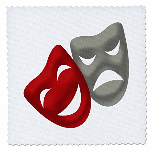 3dRose One Gray Drama Mask and One Red Drama Mask - Quilt Square, 12 by 12-Inch (qs_222674_4)