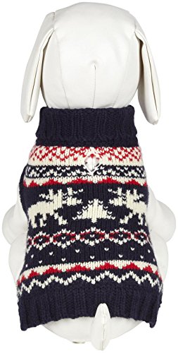 Fab Dog Knit Turtleneck Dog Sweater Moose Fairisle, Navy, 12" Length