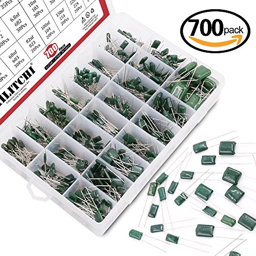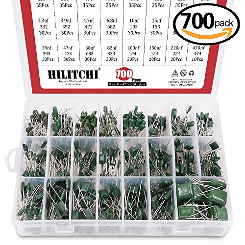 Hilitchi 700Pcs 24-Value Mylar Polyester Film Capacitor Assortment Kit - 0.22NF to 470NF / 100V