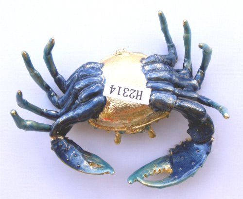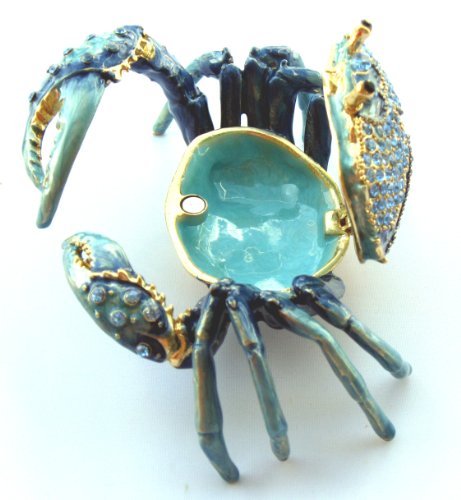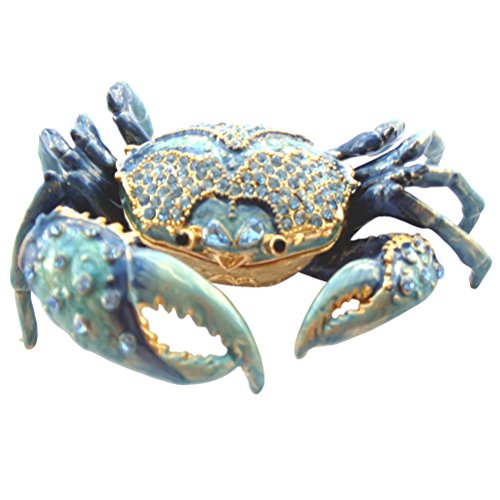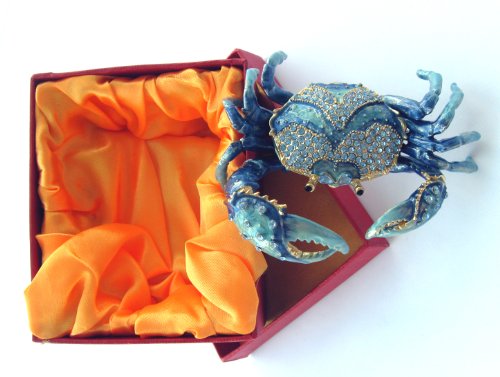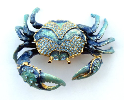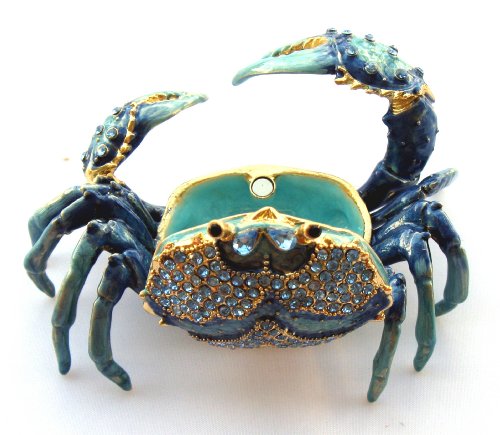Blue Crab Enameled Jeweled Box, Package Includes a Tropical Magnet