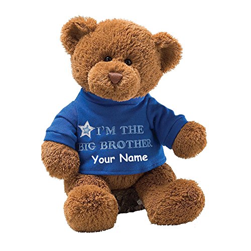 -. Binding : Toy -. Brand : Enesco -. Color : Personalized I'm The Big Brother Teddy Bear -. EAN : 0842044109604 -. Feature : Personalize this I'm The Big Brother Teddy Bear with name of your choice. / Soft, huggable plush built to famous GUND quality standards. / Teddy Bear is approximately 12 inches tall. / Surface-washable. Ages 1+ / Note: Items that are customized specifically for the customer (such as monograms, names, embroidery, etc.) are not eligible for a return. Please refer to the "Handmade at Amazon" section of the Amazon Return Policy for more info. -. IsAdultProduct : 0 -. Label : GUN -. Manufacturer : GUN -. ProductGroup : Toy -. ProductTypeName : TOYS_AND_GAMES -. Publisher : GUN -. Studio : GUN -. Title : Personalized GUND I'm the Big Brother T-Shirt Teddy Bear Plush Stuffed Animal Toy -. UPC : 842044109604