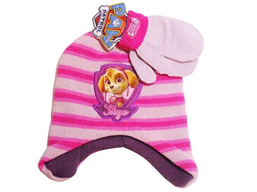 Product Description Brand new, with tags attached; ADORABLE Paw Patrol Knit winter hat with matching mittens. Pink striped with purple inside Skye embroidered. Matching mittens are pink with Paw Patrol logo. One size fits most. NOT FOUND IN STORES !! 0