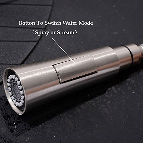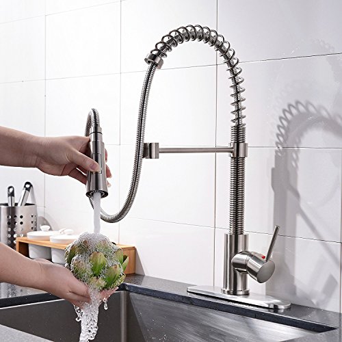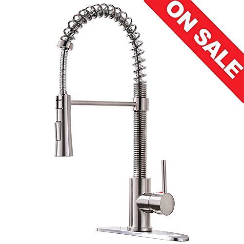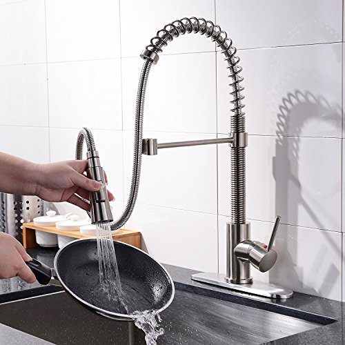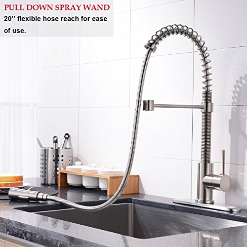 KINGO HOME Lead Free Modern Brushed Nickel Single Handle Stainless Steel Pull Down Sprayer Spring Kitchen Faucet, Kitchen Sink Faucet with Deck Plate