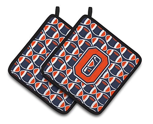 Caroline's Treasures Letter O Football Orange, Blue & White Pair of Pot Holders CJ1066-OPTHD, 7.5HX7.5W, Multicolor