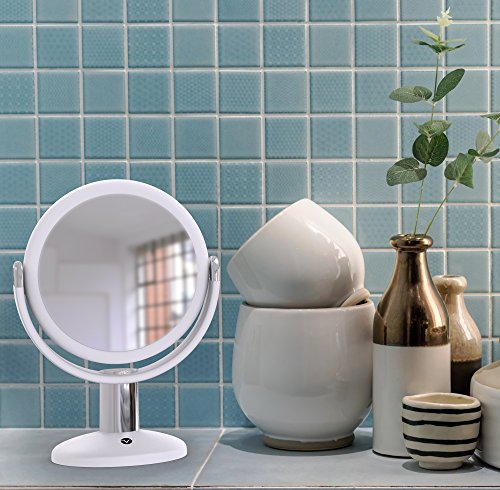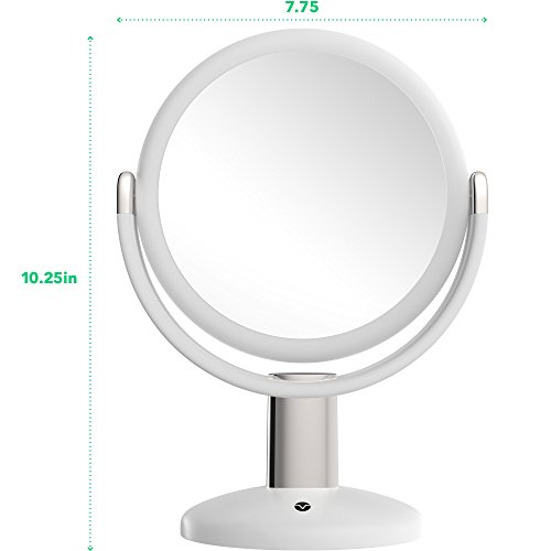 Vremi 10x Magnified Vanity Mirror - 7 Inch Round Makeup Cosmetic Mirror for Bathroom or Bedroom Table Top - Portable Double Sided Glass Mirror Stand with 360 Degree Swivel - White